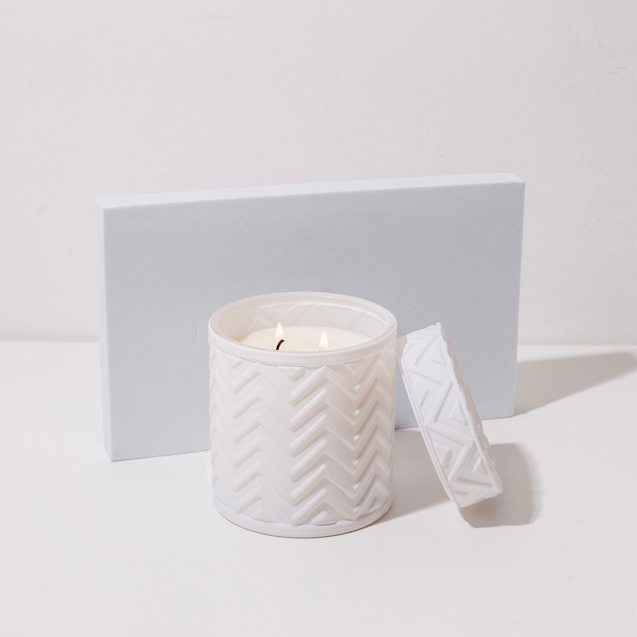 Poured into a limited-edition embossed matte glass vessel, designed to be kept and repurposed long after the candle has burned.