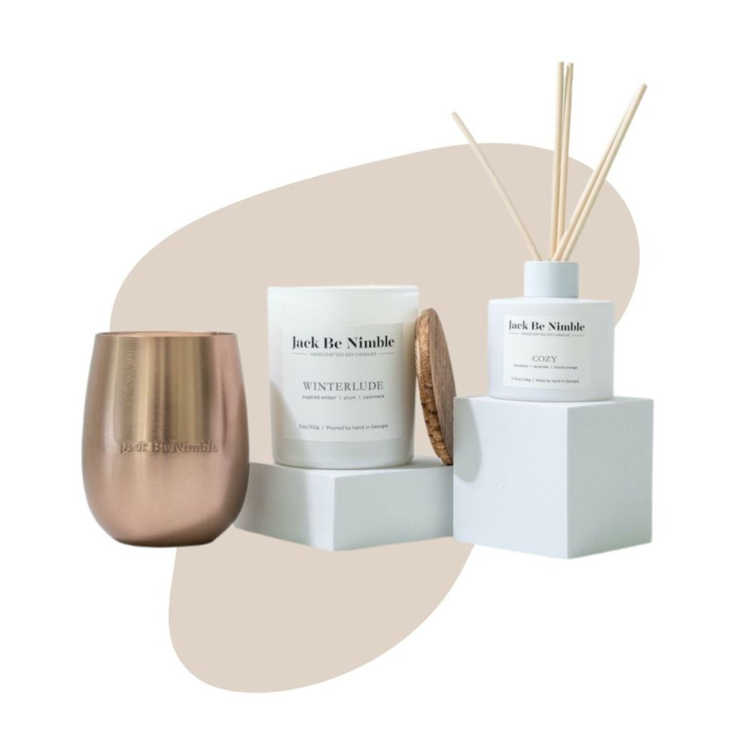 • Winterlude 11oz Matte White Candle• Cozy Reed Diffuser• Snow Day 17.5oz Bronze Limited Edition Candle • A $113 value for $99!PLEASE NOTE
