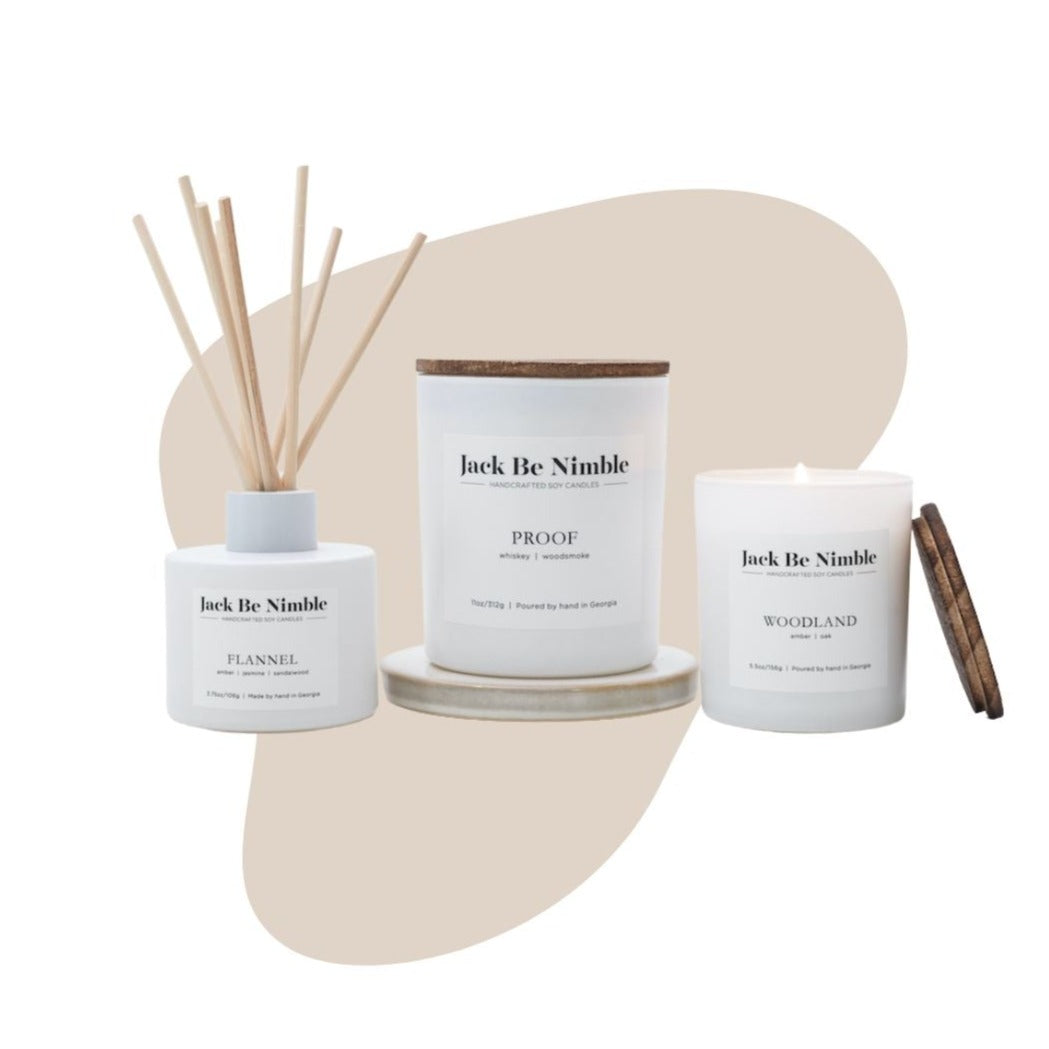 INCLUDES • Proof 11oz Standard Candle• Flannel Reed Diffuser• Woodland 5.5oz Petite Candle • A $91 - value for $80! PLEASE NOTEAdditional promo codes cannot be applied to already discounted product.